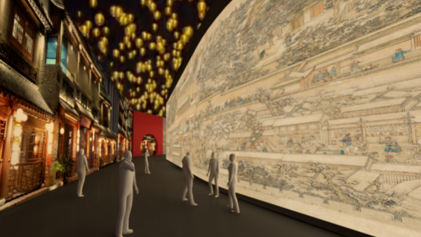 万象图系列是依托各地古城历史文化,全新创作的一幅古代特色百米风貌长卷。游客通过一键入画穿越的体验方式,进入画中游览,根据不同的角色完成不同的剧本任务。同时在项目展馆线下设置与画中NPC点位相对应的交互场景,真正做到线上线下交互,沉浸式体验。